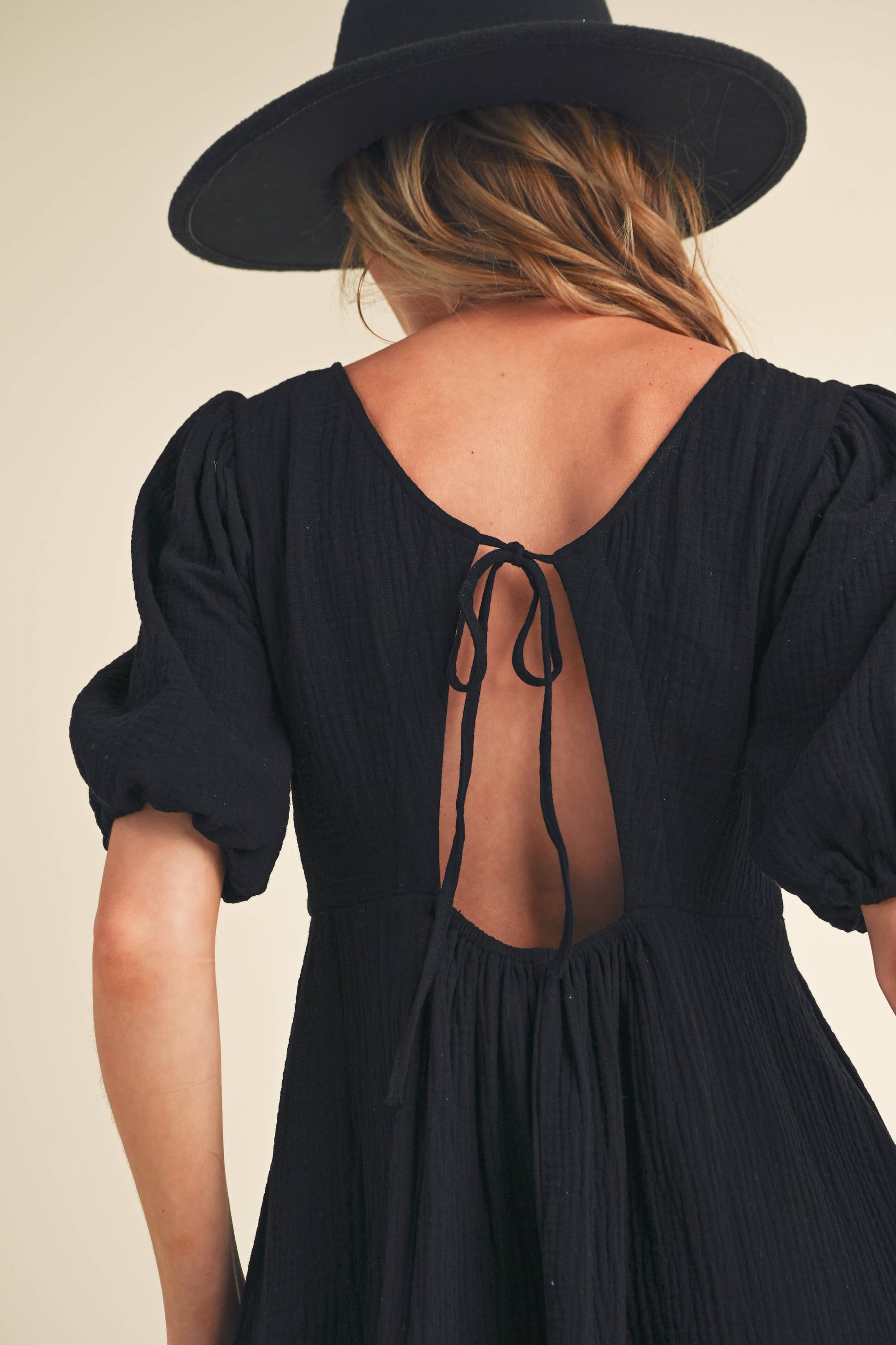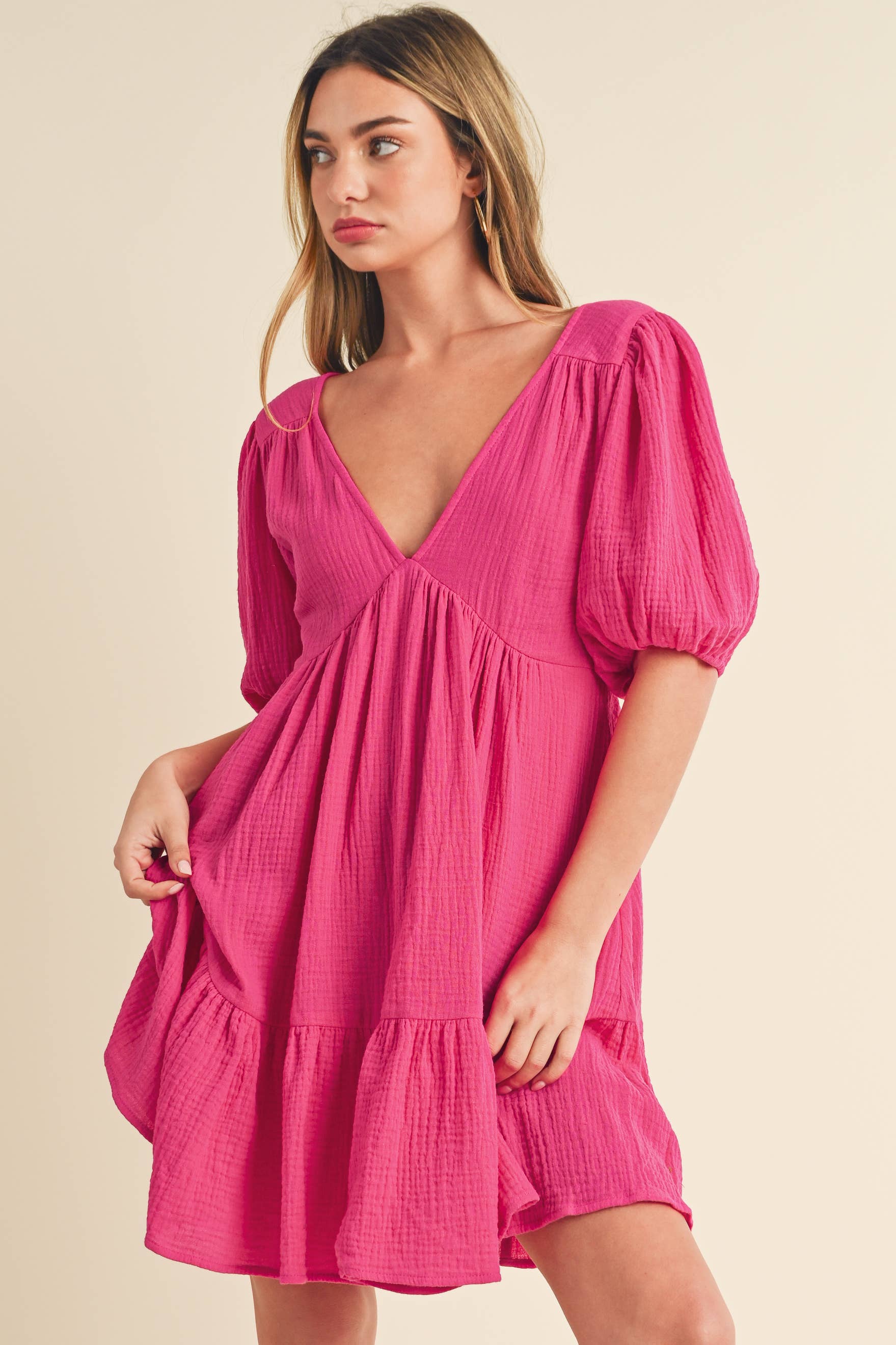 Capture modern allure in this Penny tiered minidress. The V-neck and side seam pockets add practical chic, while voluminous puff sleeves and a back-baring cutout infuse contemporary style. Crafted in gauzy cotton, it exudes summery appeal, making it the perfect blend of fashion and comfort.