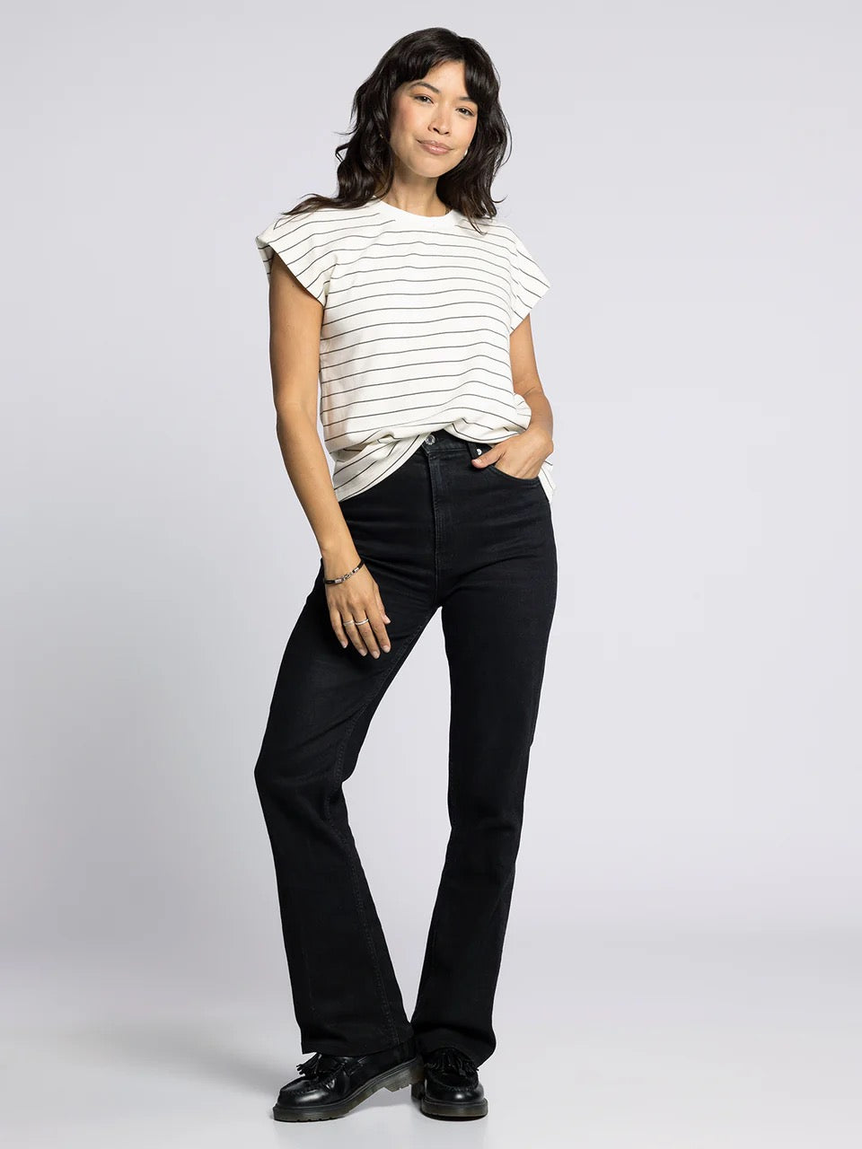 The Bella Tee features a feminine cap flutter sleeve design that adds a delicate, airy touch to your look. Soft and airy, this short sleeve crew neck tee is made from loose cotton blend for that effortlessly relaxed feel. Add it to your everyday rotation.