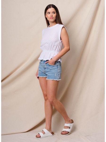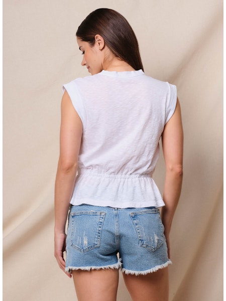 The Cinch Tee by Sundry is a stylish and versatile addition to your wardrobe. Featuring a unique cinch design, this tee offers a flattering fit for any body type. Made with comfortable and high-quality materials, it is ideal for both casual and active wear. Upgrade your everyday look with the Cinch Tee.