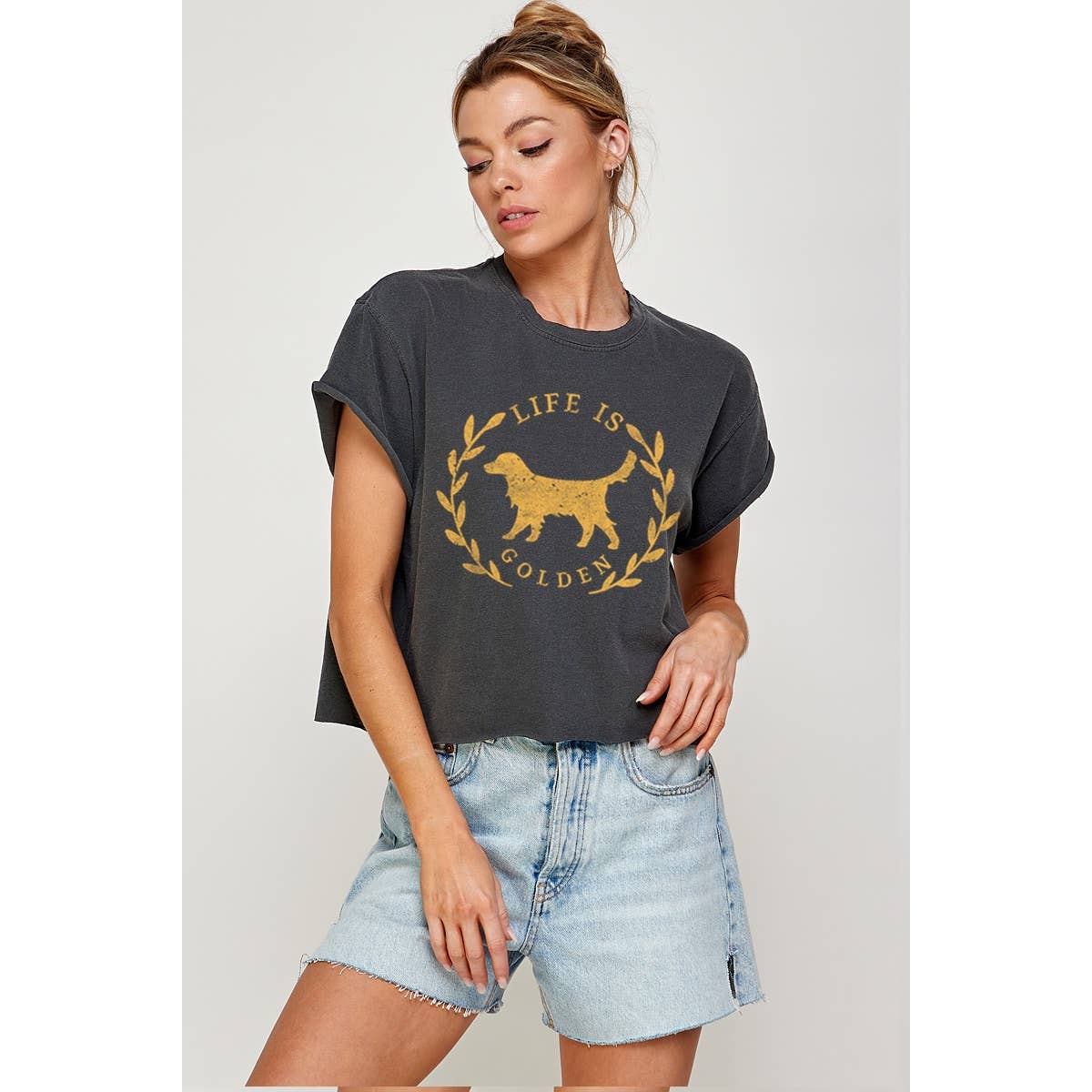 This handmade graphic crop top features a double-layer neck and embodies a vintage boho style. Printed in the USA, it is crafted from heavyweight 6.1oz 100% ring-spun cotton for durability and comfort.