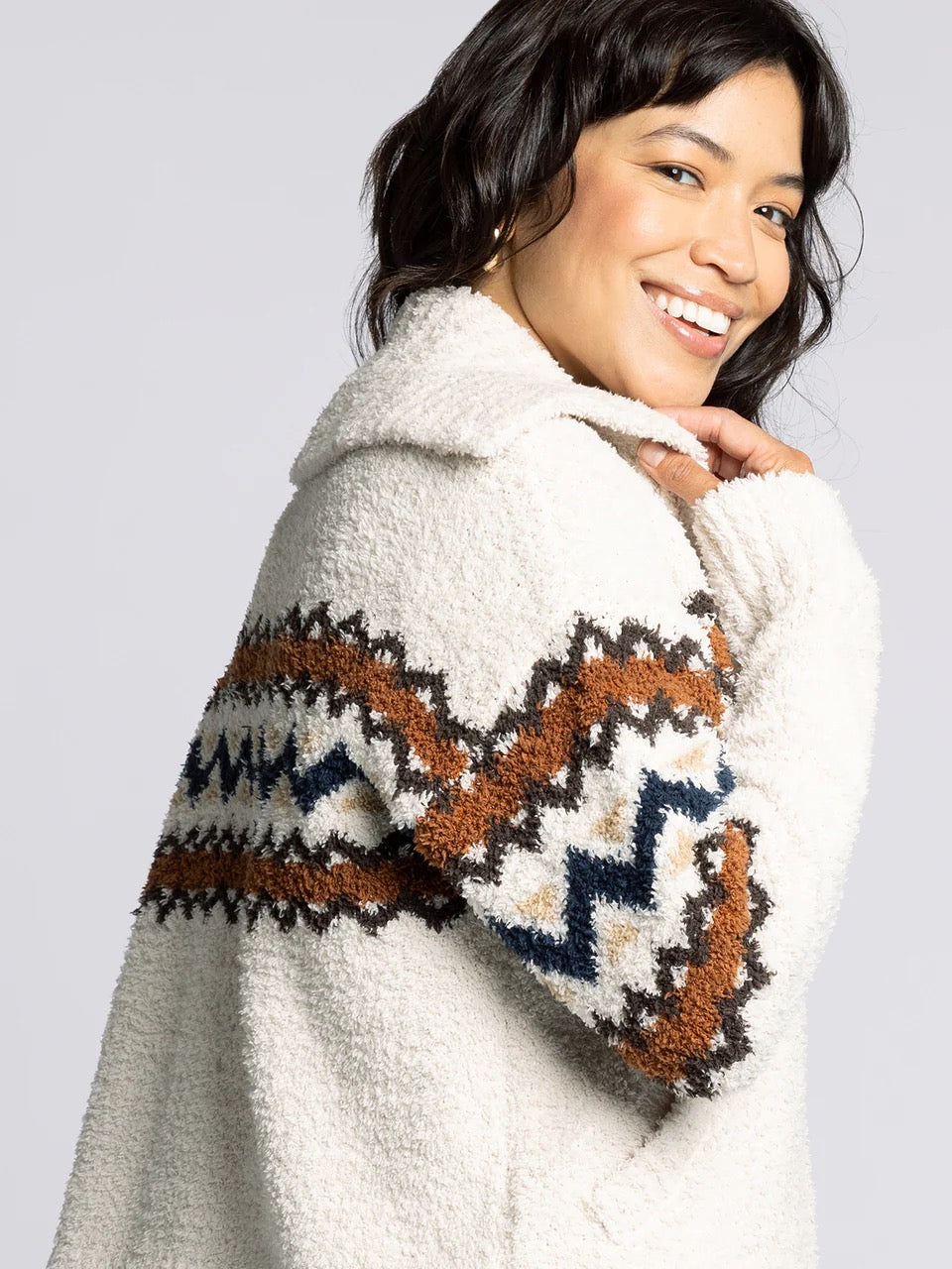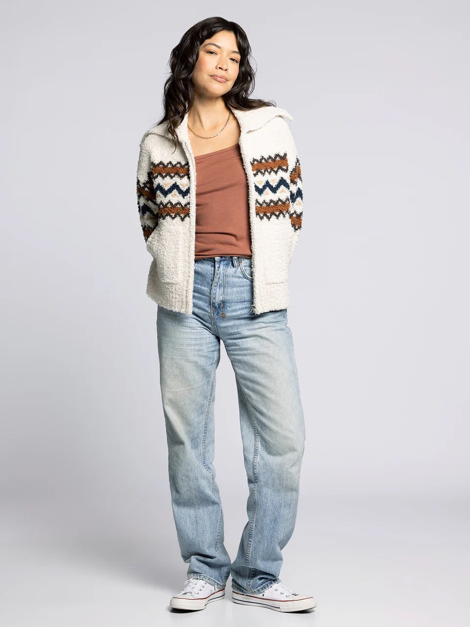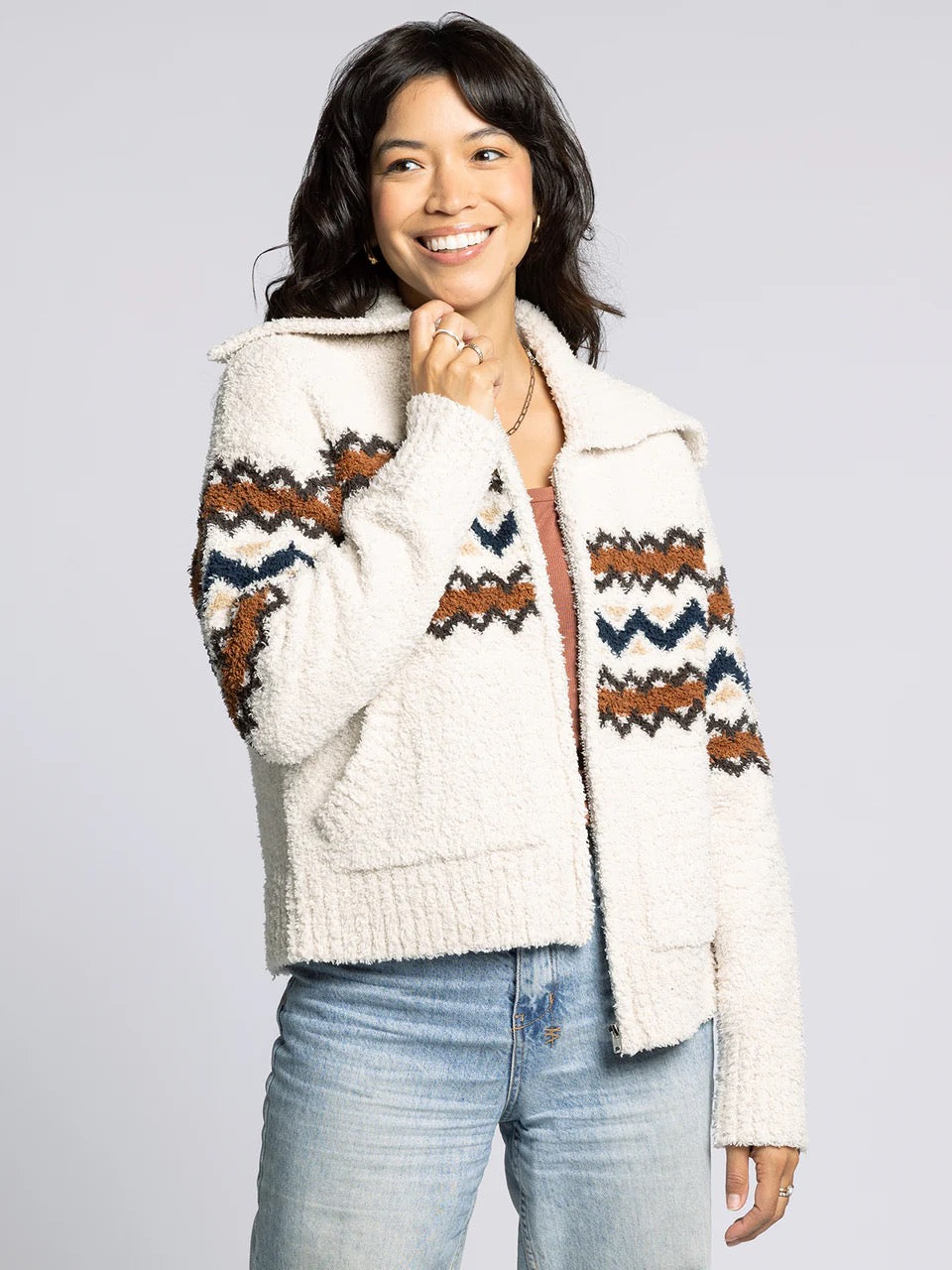 Bring a cozy charm to your everyday style with this staple sweater jacket, featuring a plush knit fabrication, zip font closure, and a relaxed silhouette for effortless layering on the go.