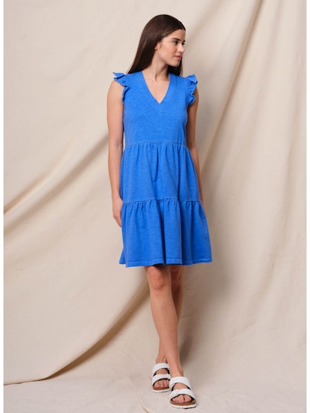 This tiered flutter dress offers a playful yet feminine look. The tiered design adds dimension and movement, while the flutter sleeves give a subtle touch of charm. Perfect for any occasion, this dress will make you stand out in style.